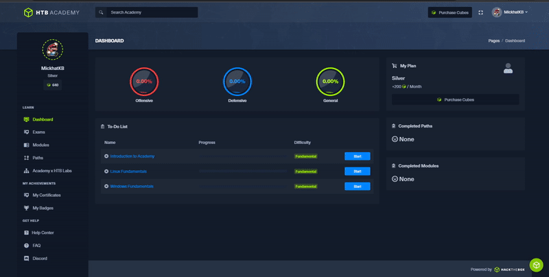 Where the Labs are focused on challenging yourself, the Academy exists to help you learn and grow from both offensive and defensive perspectives. The Academy is comprised of structured modules that form defined pathways, allowing individuals to develop specific skills or follow role-based career tracks, such as the Pentester pathway.