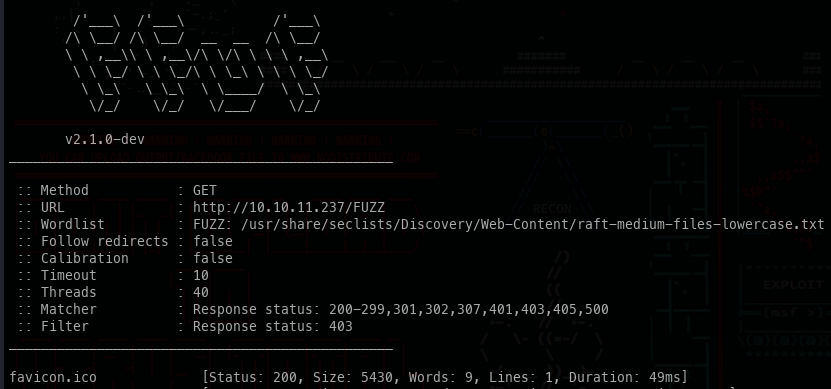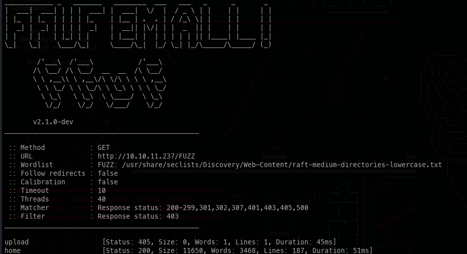 Before testing the upload feature, we can run FFuF to check the attack surface.