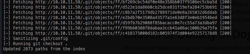Using GitDumper, we can pull down all objects from the Git repository: