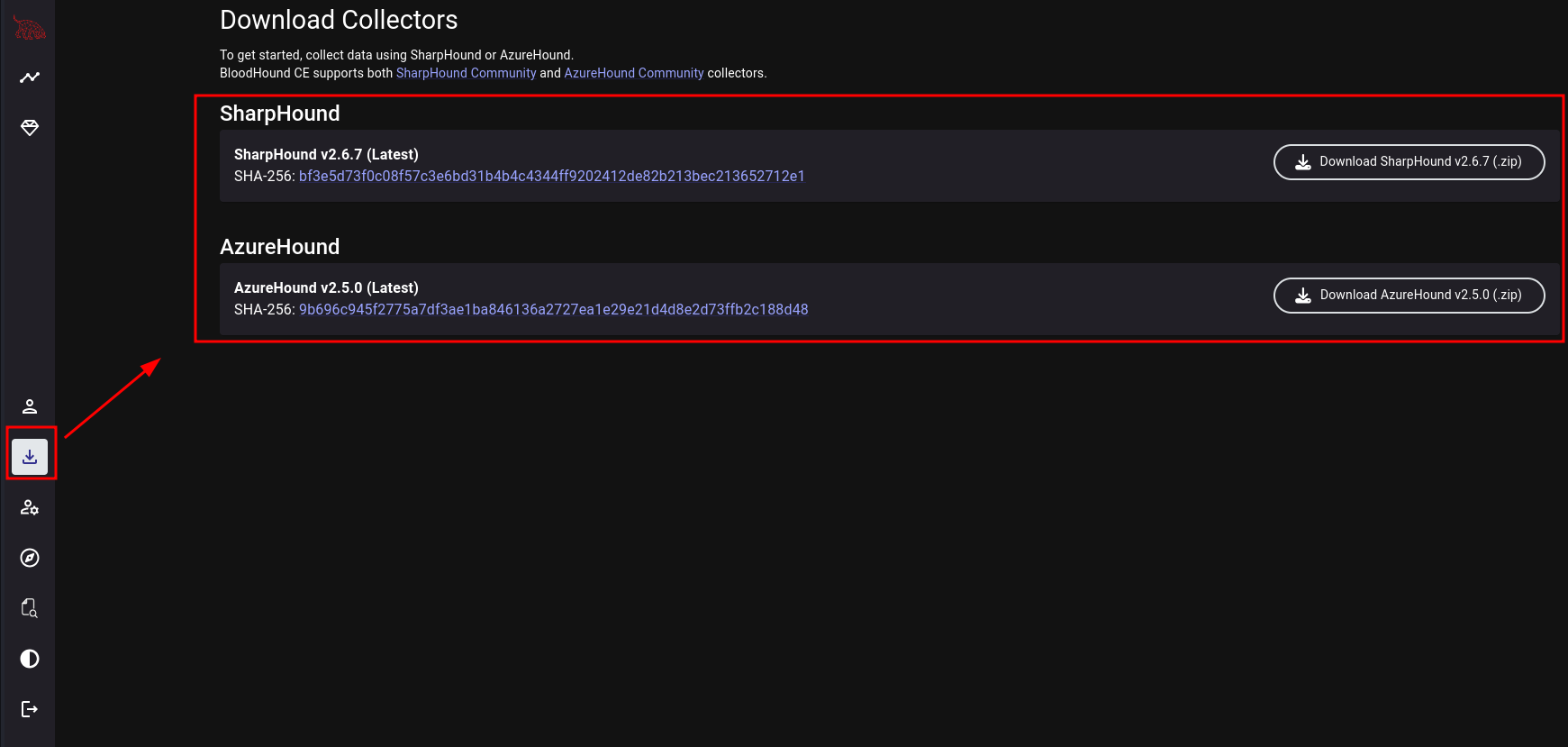 Luckily, BloodHound has local ingestors available under the Data Collectors tab: