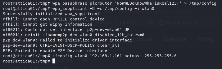 wpa_passphrase plcrouter 'NoWWEDoKnowWhaTisReal123!' > /tmp/config
