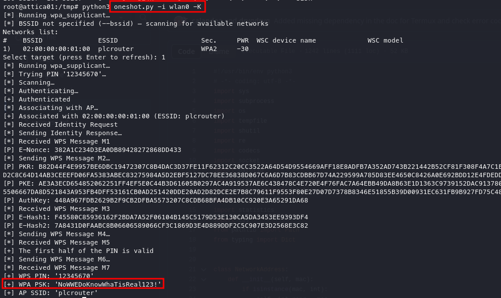 We can now see the WPA password and the AP SSID, which we can leverage to access the wireless network.